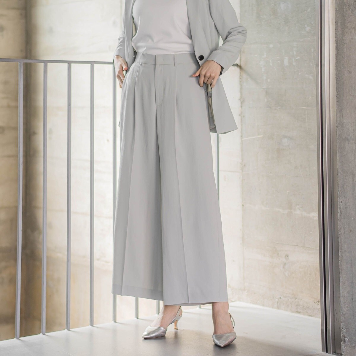 たっぷりとした分量感がエレガントな印象のワイドパンツ。