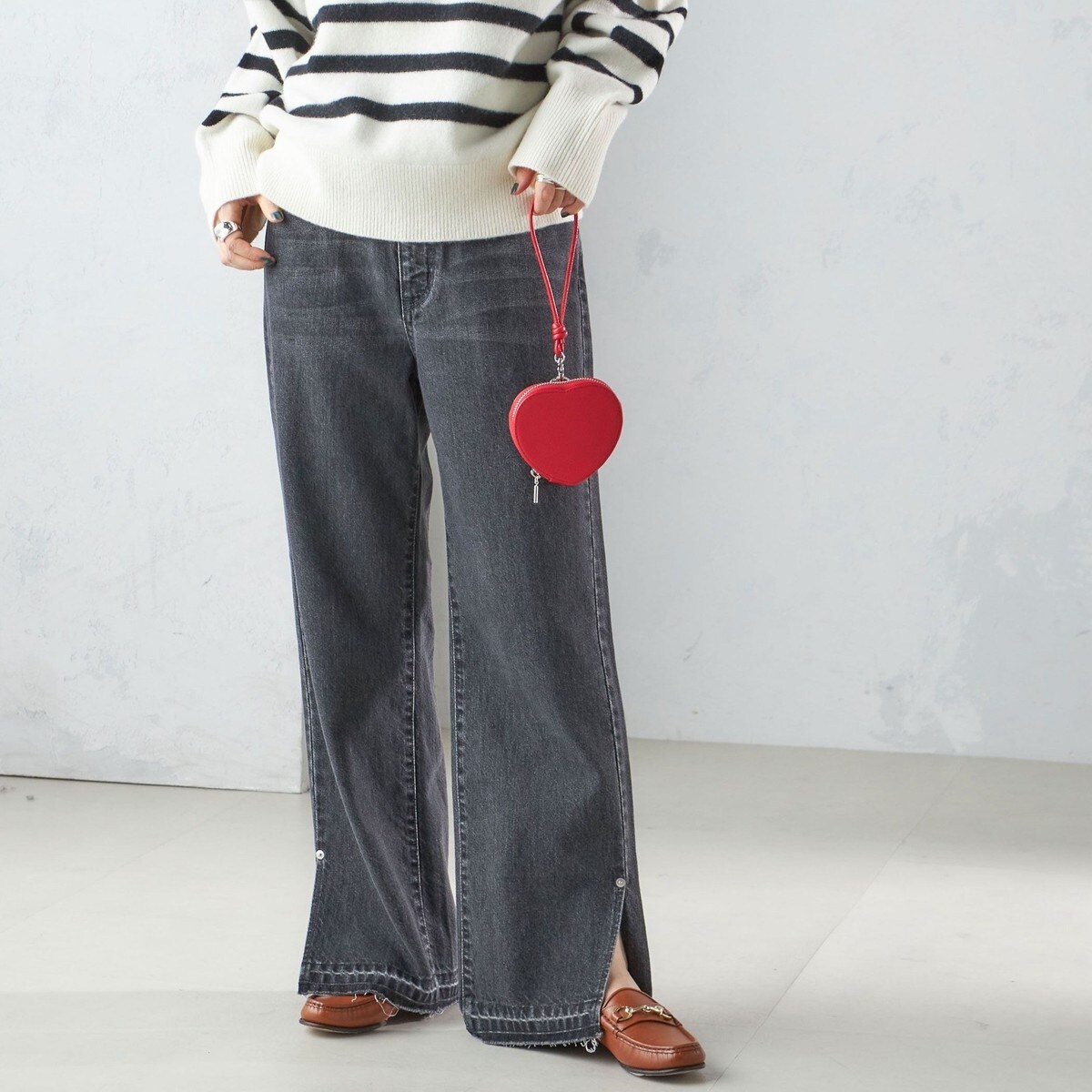 サイドスリットワイドパンツ≪洗濯機で洗える≫
