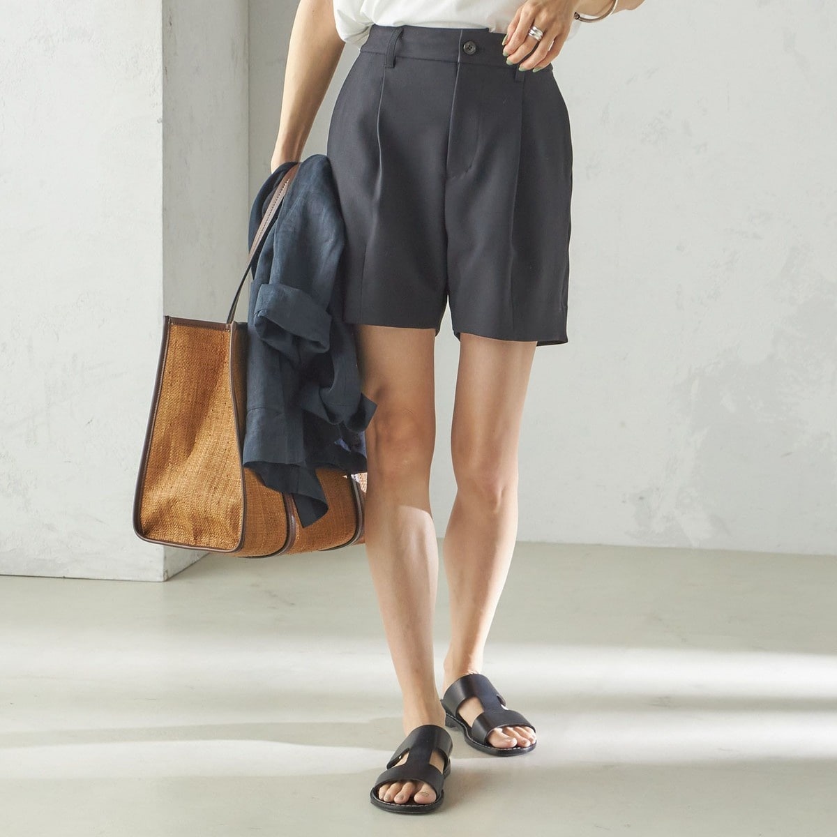 <明日香さんコラボ>ベルト付き美脚ワイドパンツ
