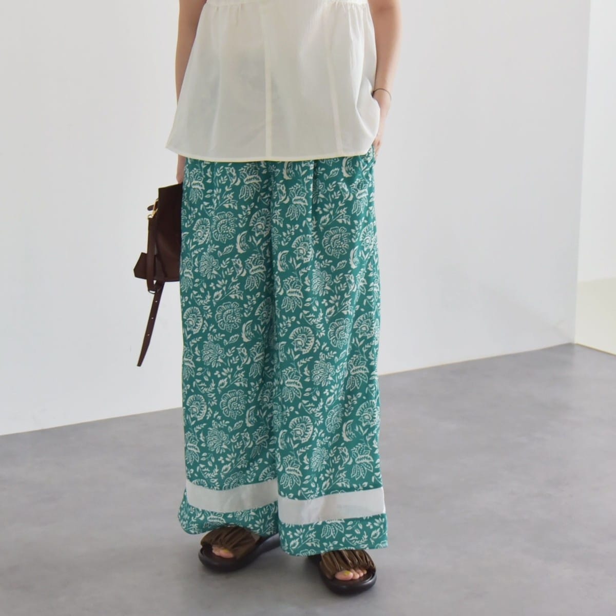 足もとはフラットシューズやサンダルをプラスしてリラックス感のある着こなしも◎