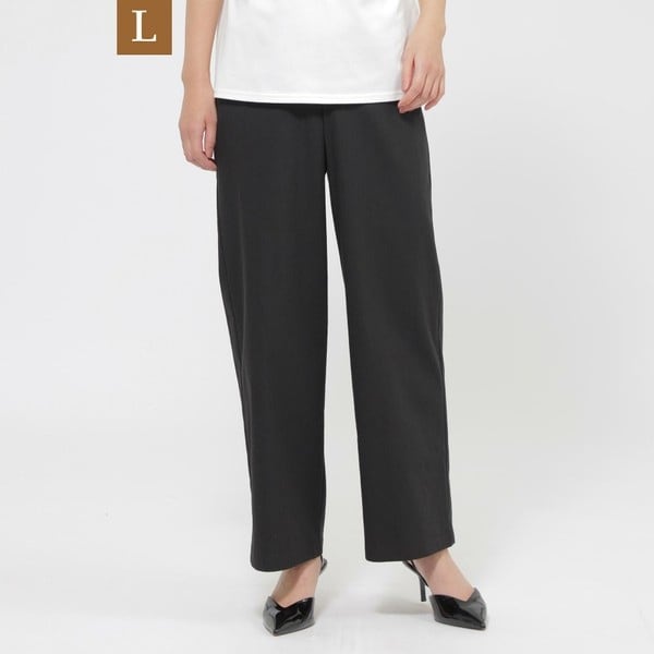 【L】【カタログ掲載品】【ウォッシャブル】コットン麻ブレンドストレッチワイドストレートパンツ