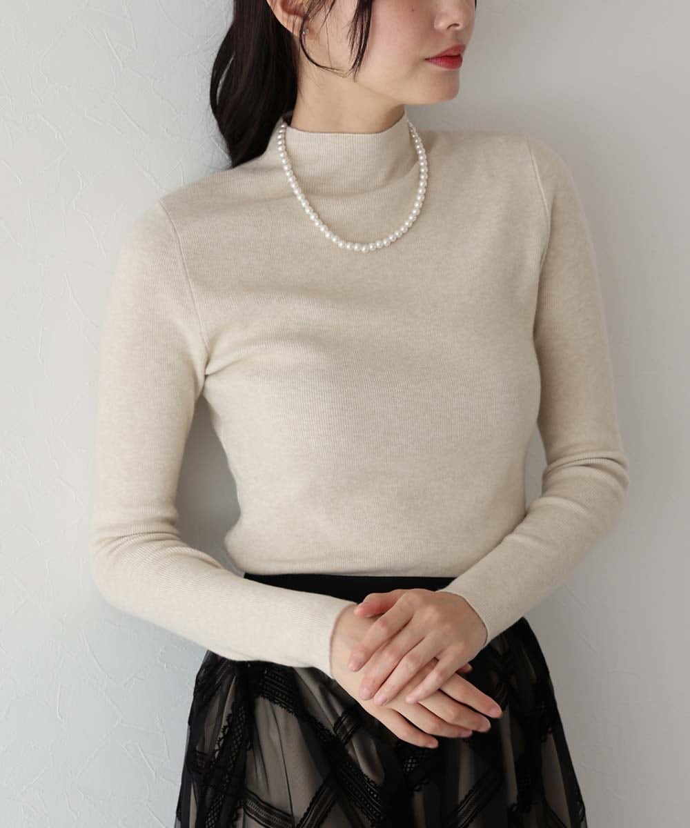 デイリーに使えるシンプルなハイネックニット。