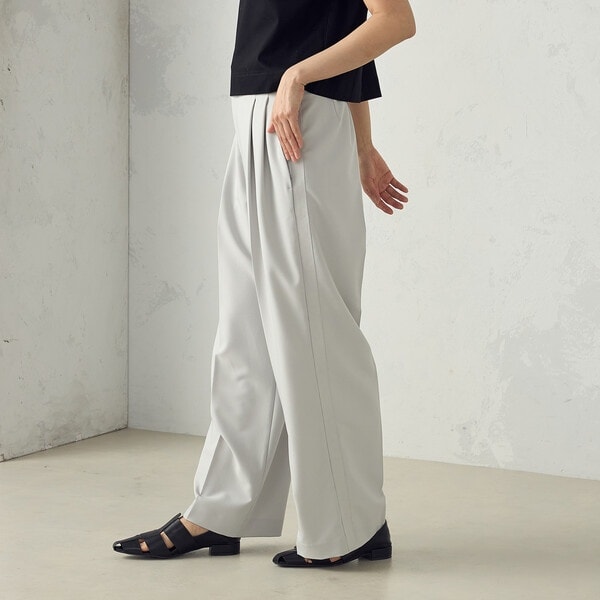 後ろウエスト部分のみゴムを通すことで、きちんと感がありながらもリラクシーな穿き心地とストレスフリーな着脱を実現します。