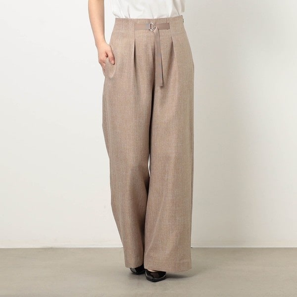 【WALDO】麻調のポリエステル素材を使ったワイドパンツ。ウエストにグログランテープを施しワイドなシルエットが大人らしさをかもしだしてくれます。ポリエステル素材のためシワになりにくく清涼感もあり幅広く活躍してくれるパンツです。ダブルジャケット(メーカー品番:5168-3400)とセットアップが可能になります。