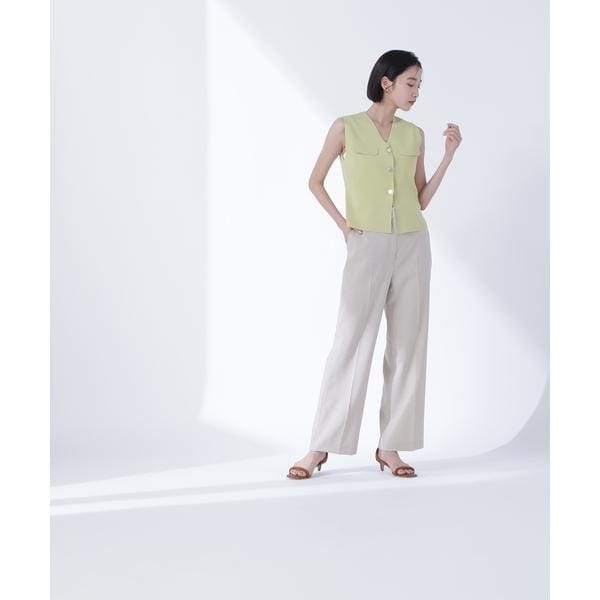 ドライタッチな素材で夏もサラッとはける美シルエットパンツは、通勤にも使えるミニマルなデザインです。ノータックで腰まわりがスッキリ見えし、ジャストウエストで今っぽいバランスの着こなしが叶います。ストレートシルエットで、オーバーサイズのトップスや裾出しスタイルの際も、脚がすっきり見えてバランス良く着ていただけます。<素材>サラッとしたドライタッチで控えめなメランジ感のある生地を使用しています。<詳細>仕様・前ファスナー裏地・なし透け感・なし / 光沢・なし / 伸縮性・なし生地の厚さ・普通※モデルの着用画像の場合、光の当たり具合により、実際の色味と異なって見えることがございます。色味は、商品単体の画像をご参照ください。