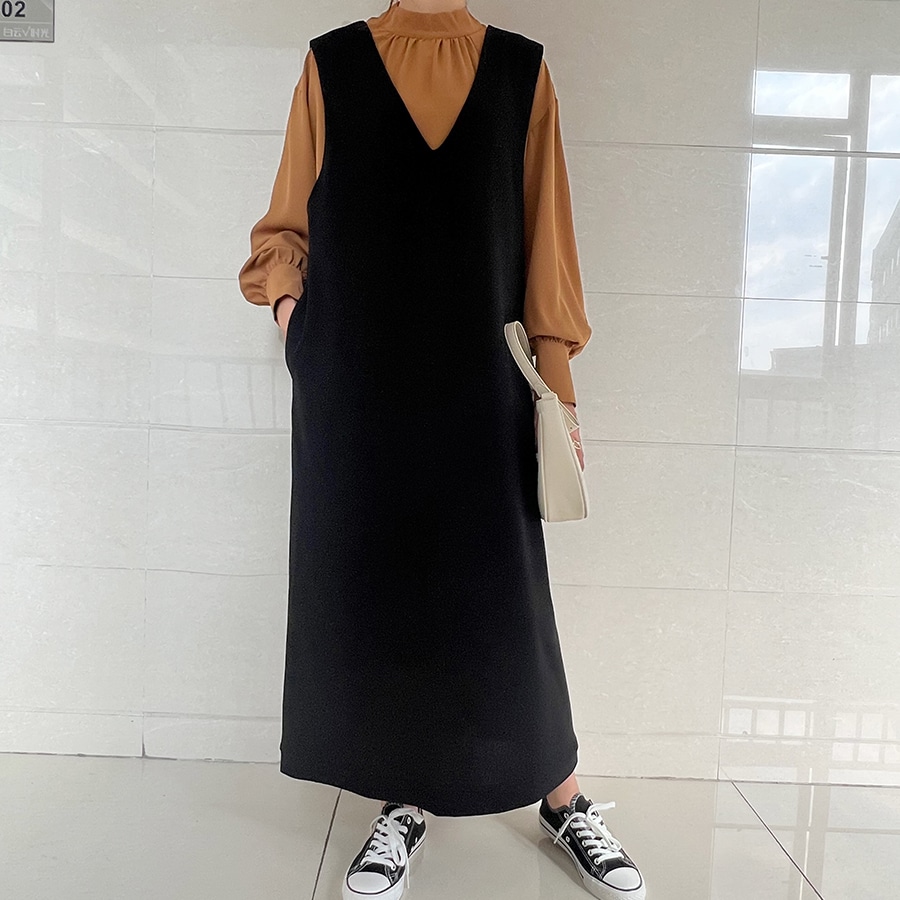 LCD-2407-008 ワンピース ノースリーブ Vネック ロング カシュク