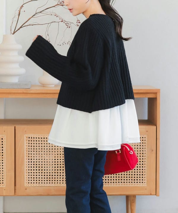 Petitle パールボタンペプラムファーベスト[K1260] モカ PM