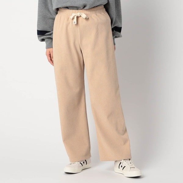 表はコーデュロイ風、内面はなめらかな起毛のボンディング素材を使ったイージーパンツです。