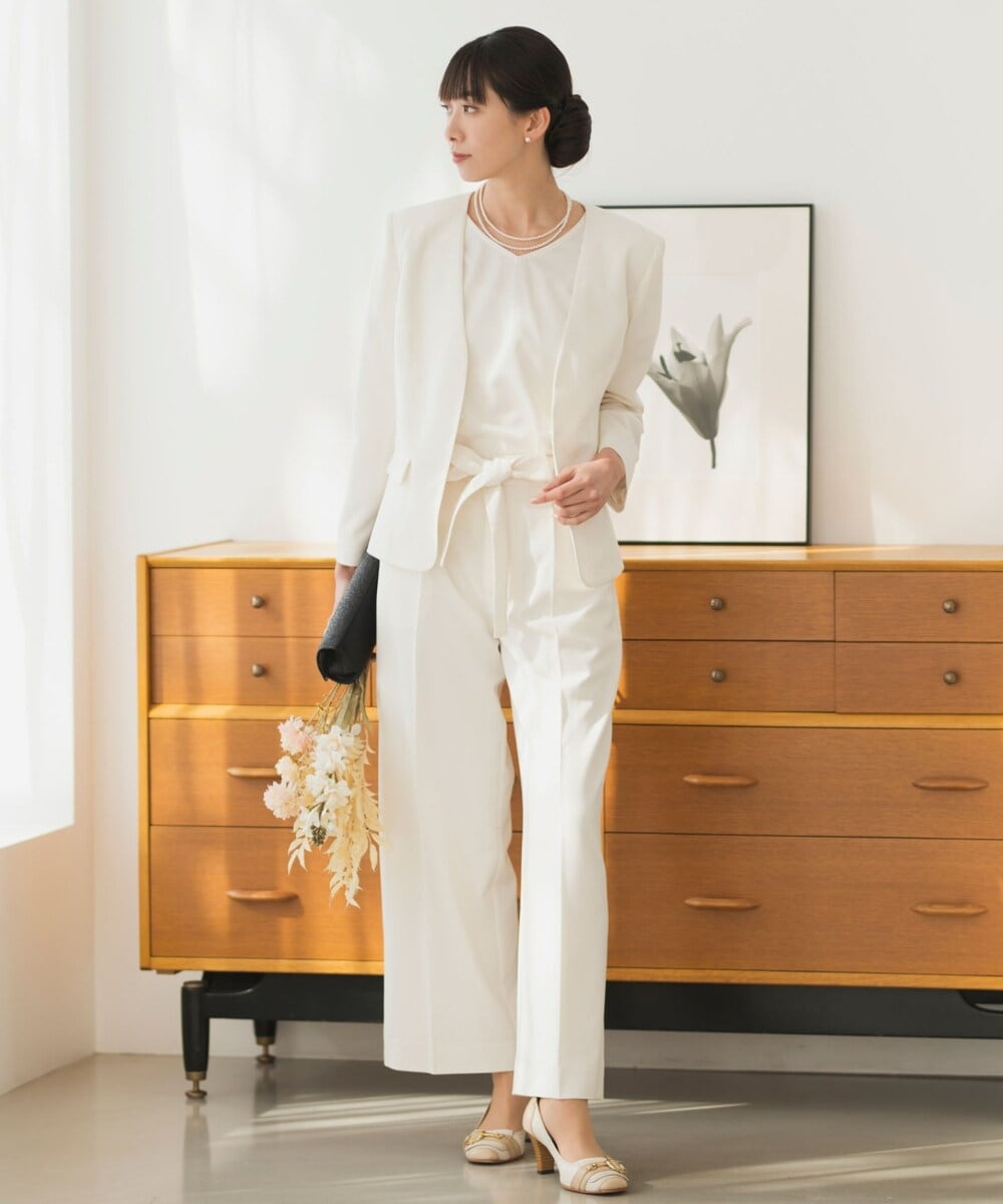 ツイードフリンジ テーラードベスト ワイドパンツ 2点セット セットアップ