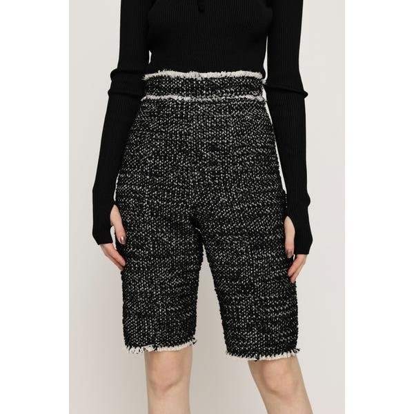 【CUT OFF TWEED HALF PT】■POINT:切りっぱなしが可愛いツイードのハーフパンツ。表面感があり、コーディネートが映える一枚。程よい丈感もポイントです。■DETAIL:ウエスト部分が切り替えで、切りっぱなしのデザインがポイント。センタータック仕様なので、着用した際にシルエットを綺麗に見せてくれます。■STYLING:同素材のブルゾン(030HAZ30-3691)とセットアップで着用するのがおすすめ。あえてカジュアルなトップスと合わせるのもイチオシです。■FABRIC/MATERIAL:表面感のあるツイード素材を使用。※本品は裁ち切り始末にしています。着用や洗濯、クリーニングの繰り返しにより、ほつれが増したり、裁ち切り部分が丸まってくる事がありますので、ご了承下さい。ほつれが目立った際はほつれた糸を引っ張ったりせず、カットして下さい。本品は、着用(使用)や洗濯クリーニングにより、毛羽立ちや毛玉が発生することがあります。連続着用はお避け下さい。毛玉が出来てしまった場合は、毛玉取り器またはハサミで丁寧にカットして取り除いて下さい。毛並みのある製品は表面を軽くブラッシングして毛並みを整えて下さい。※商品画像はサンプルのため、色味やサイズ、素材の混率等の仕様に変更がある場合がございますので、予めご了承ください。※一部予約商品につきましては生産上の都合によりお届け予定日や店頭発売と前後する場合もございます。※追加生産商品は、一部の店舗、通販で販売中の場合がございます。予めご了承下さい。