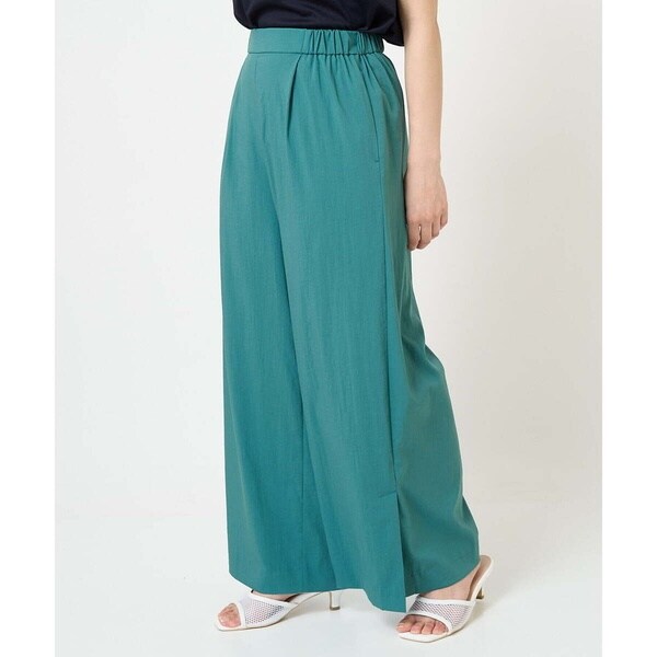 ファスナーなどがなくプルオンで履くことができるラクチンなワイドパンツ。リラクシーな着心地ながらも、前ウエストはすっきりときれいめなデザインに仕上げることで、きれいめにも履きこなせます。サイドのベンツ開きでやや広がるワイドシルエットがポイント。
