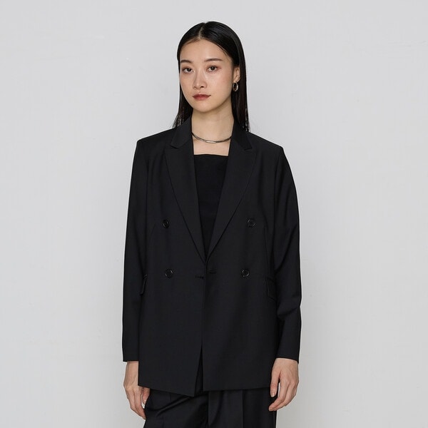 襟からポケットやボタン、絞りの位置まで全ての位置を上げ重心を上にすることで、 目線を上げスタイル良く脚長に見える独自のバランスにしたダブルジャケットです。
