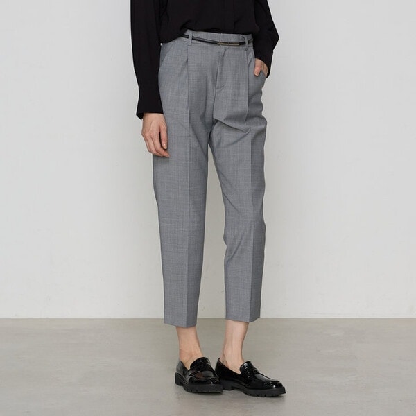 前側はタック+センタープレスでたてのラインを強調しさらに脇線を少し前に振ることで、視覚効果を利用して脚長の美脚スタイルが叶います。