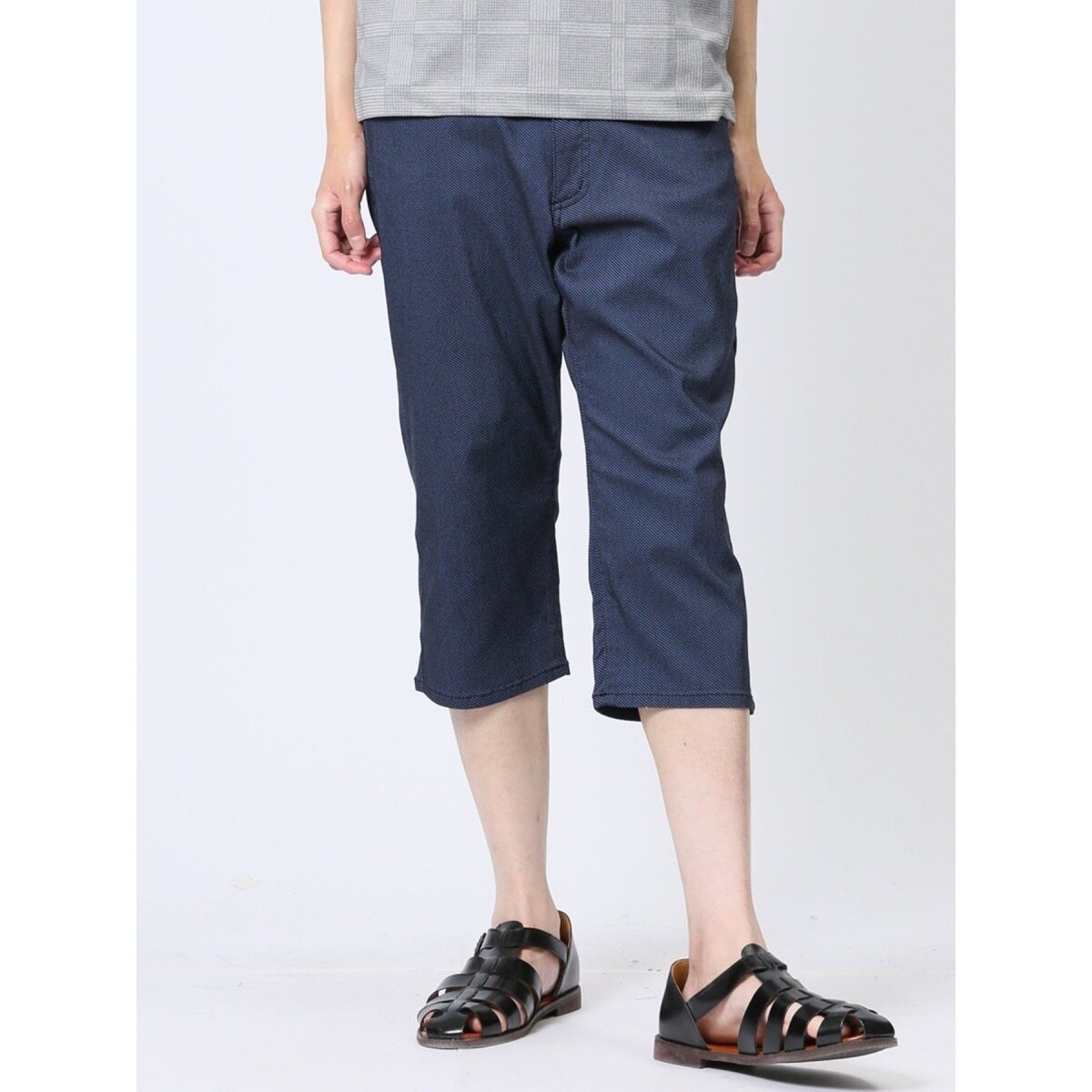 綺麗目な印象に仕上げたクロップドパンツです。定番のファイブポケット(フロント×2・ヒップ×2・コインポケット×1)です。幅広い年代の方に穿いていただける、シンプルで落ち着いたデザインです。