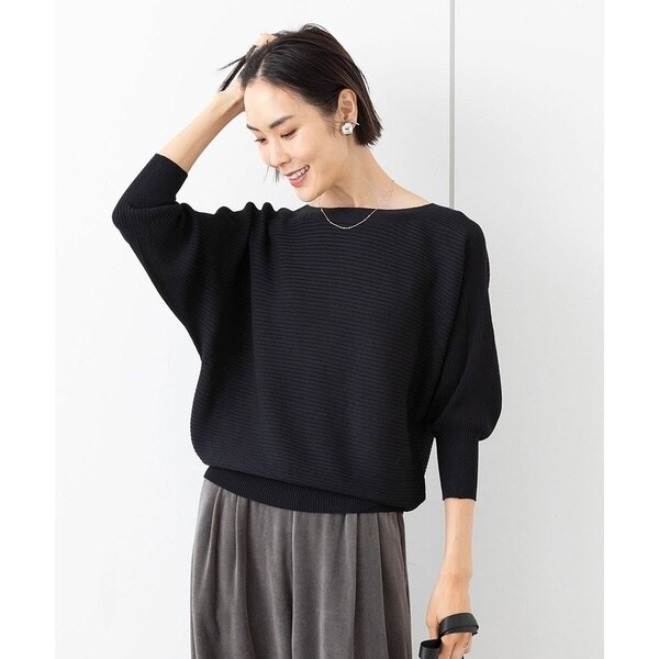 リブの横使いのボートネックのドルマンスリーブプルオーバー。袖口と裾のリブで着るだけでシルエットがサマになるデザインです。アウターのインナーとして着ても袖が上がりにくいデザインでご用意いたしました。2023年秋に初登場で好評だった長袖タイプを、2024年の新色でご用意いたしました。