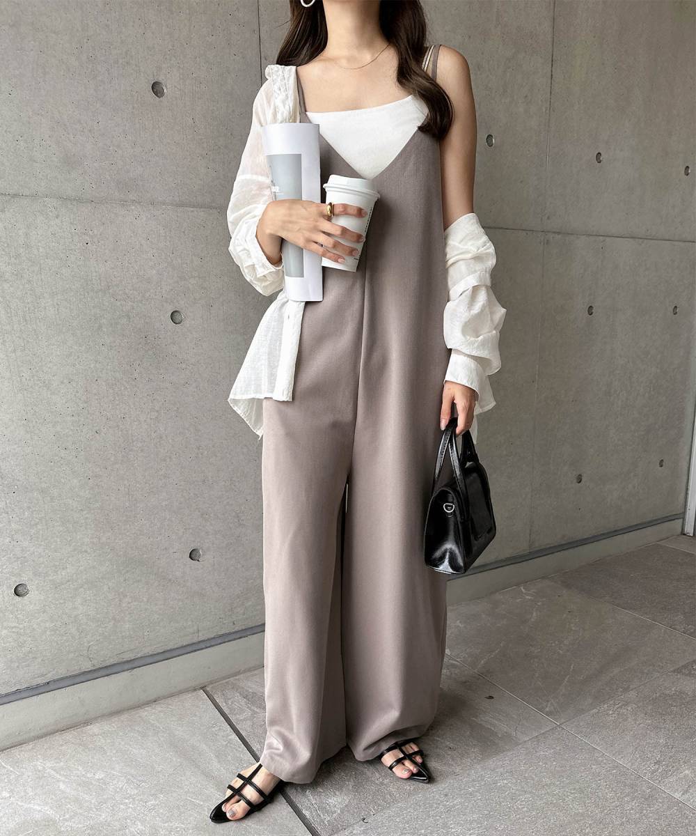 【きれいめサロペット】新色ブラックデニム入荷!ツイル素材 ワイド パンツ ジーンズ ロングセラー