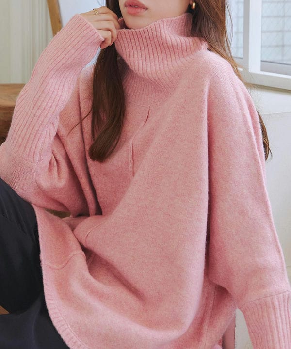 ダークグレー ニット ポンチョスタイル(秋冬物)