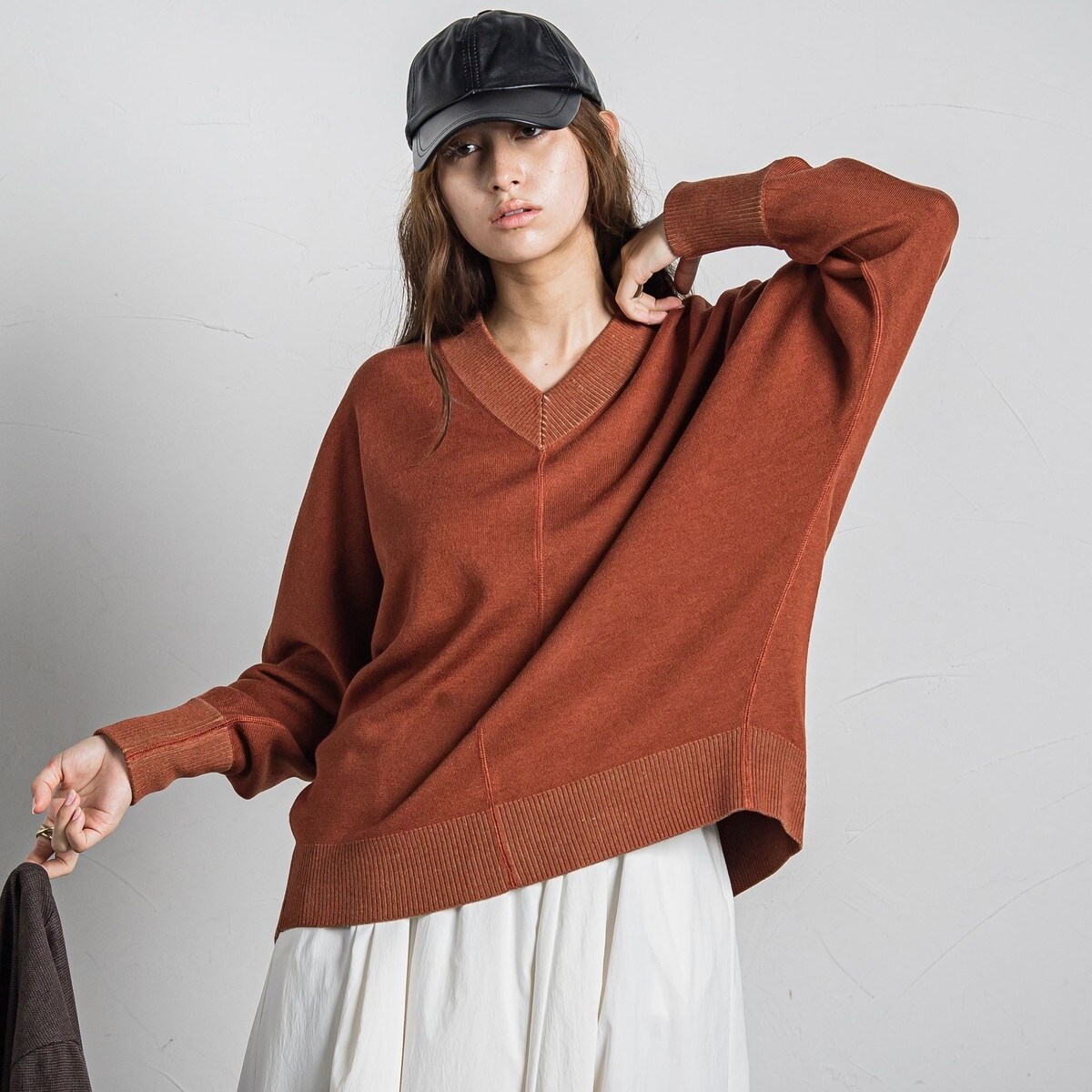 【新色追加】Vネックコクーンニットプルオーバー≪手洗い可能≫