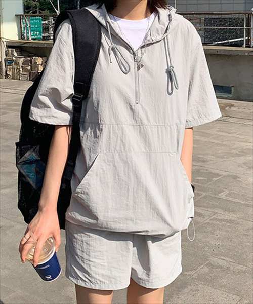 ラッシュガード セットアップ レディース アノラックパーカー フード付き 水陸両用 ハーフジップ パーカー ショートパンツ 体型カバー UVカ