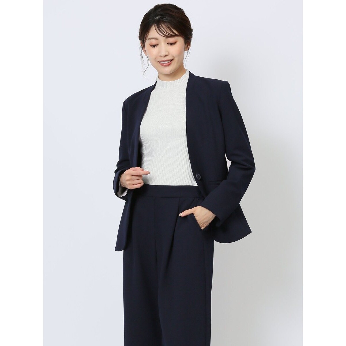 カットジョーゼット カラーレスジャケット 紺(セットアップ可能)