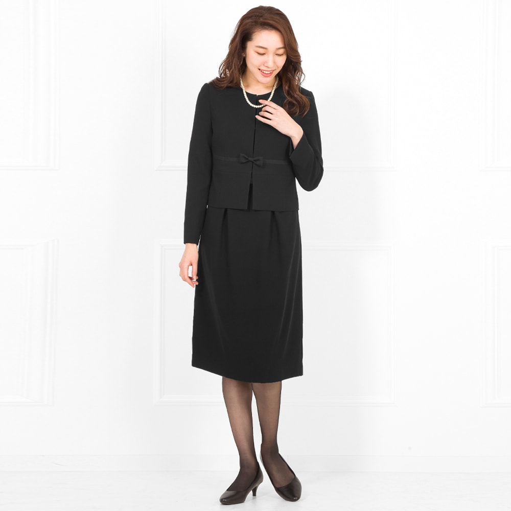 冠婚葬祭のマナーに沿った上品なブラックのアンサンブルセットです。