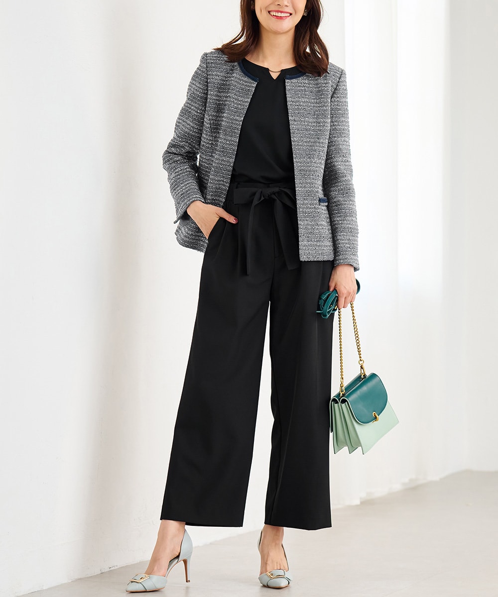 【4点セット】〈ワイドパンツ〉ツイードジャケットパンツスーツ4点セット