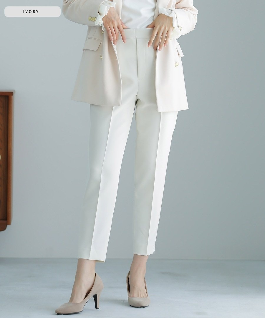 ダブルピケクロス・美脚テーパードパンツ/ホワイトジョーラ ブラック