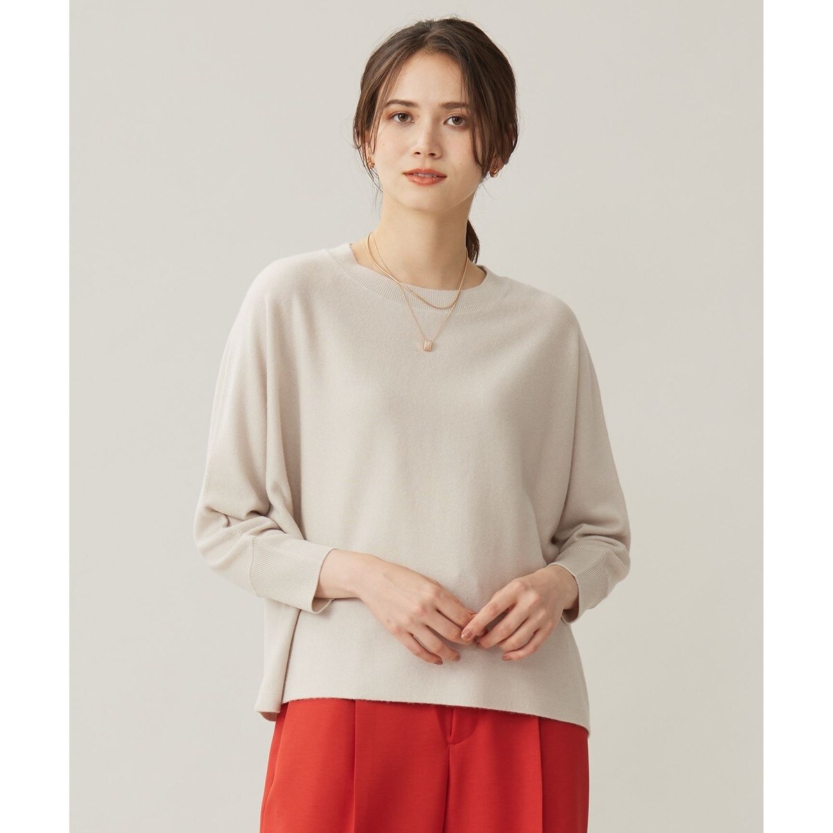 程よいショートレングスとゆったり感が今年らしいニット■デザイントレンド感のあるややショート丈のニットです。身頃にゆとりを持たせた程よいドルマンシルエットなので、体のラインを拾いにくく軽めのポンチョのようなイメージで着て頂けます。今年らしいバランスでコーディネートを楽しめる1着です。■素材オーストラリア産のスーパーファインメリノウールを使用しております。紡毛とセミ梳毛の引き方を変えた2本の糸を撚糸することで、紡毛のスポンディッシュで暖かな風合いと、セミ梳毛の天然の光沢感とソフトなタッチを併せ持った、贅沢な素材感に仕上がっています。ハイゲージで仕上げることで適度な膨らみはありながら、秋から春先まで長く着て頂ける素材です。