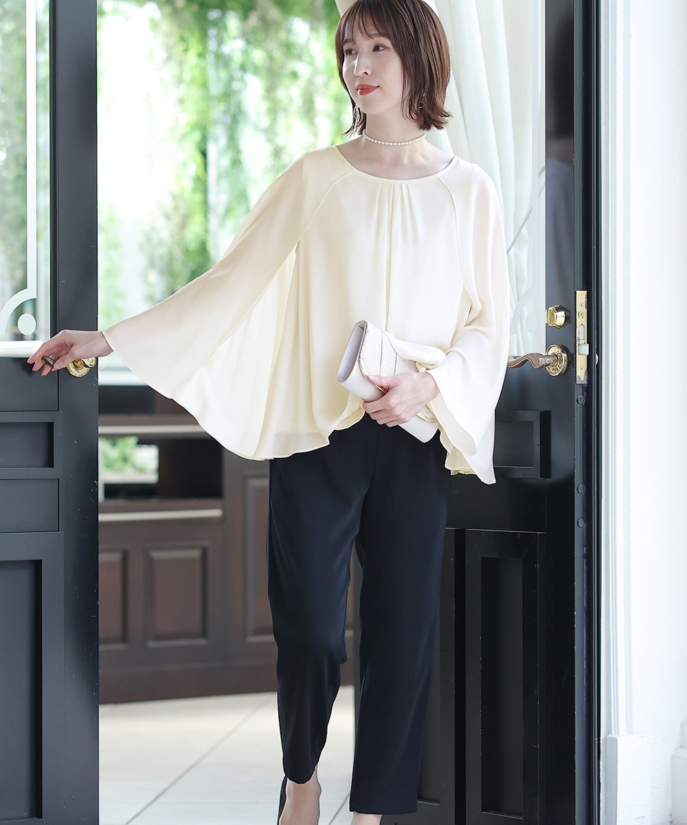 シフォン生地のトップスは柔らかく、軽い着心地です。