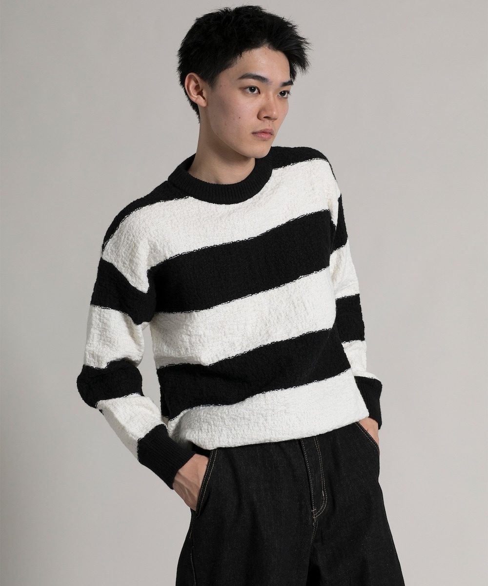 ■ITEM『太めのボーダーデザインが目をひくニットプルオーバー。』■MATERIAL* 透け感:なし* 裏地:なし* 伸縮性:あり* 光沢感:なし* 生地の厚さ:普通■DESIGN*ソフトな手触りで温かみのある生地