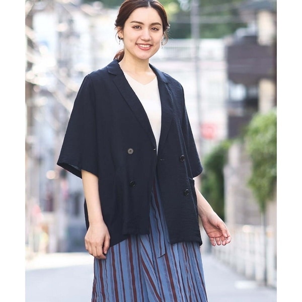 【大きいサイズ】 半袖テーラードジャケット 大きいサイズ レディース ジャケット アウター 半袖 春
