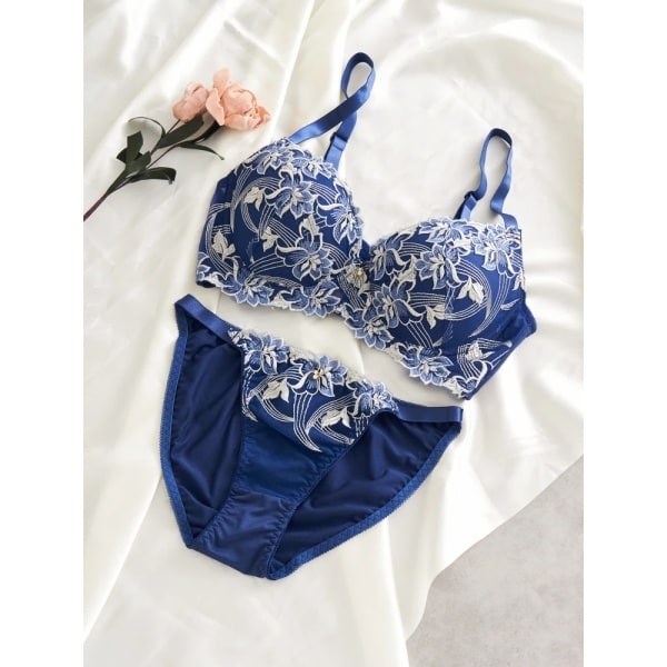 モダンな雰囲気を纏うフラワーモチーフの刺しゅうをあしらったブラショーツセット。
