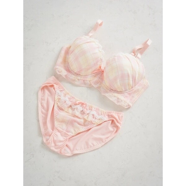 優しい色合いのチェック柄が愛らしい表情を演出するブラショーツ。
