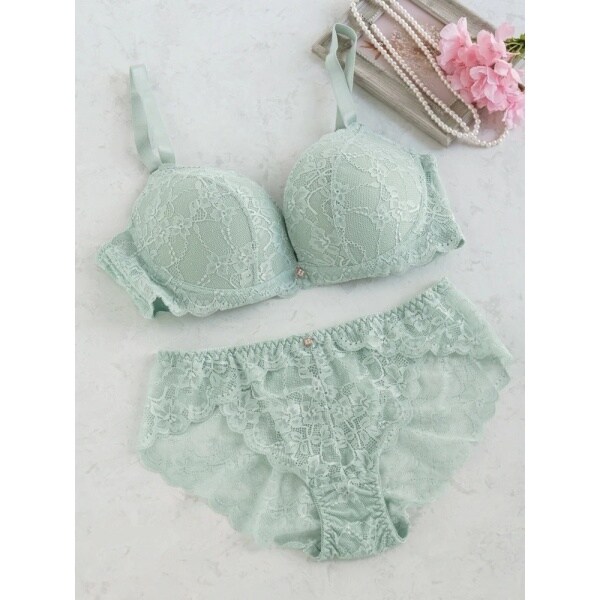 繊細なレース使いが女性らしさを引き立たせるブラ&ショーツのセット。