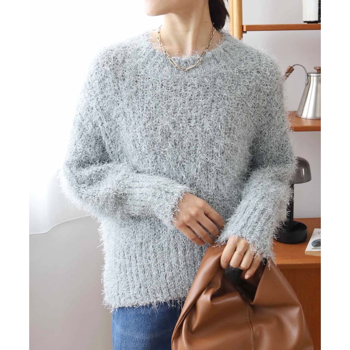 ざっくりローゲージの片畦編みニットは今年トレンドのラメ入り素材。