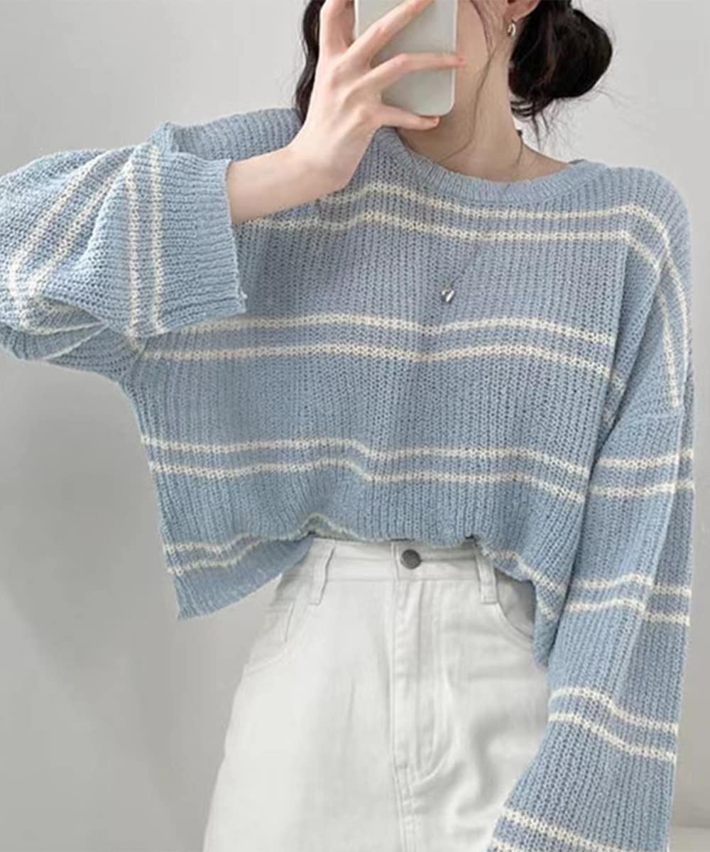 薄手の軽い生地なので、重ね着も日焼け防止対策としても使えるニットトップス