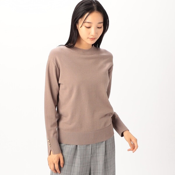 袖のボタンがアクセントになるベーシックなクルーネックニット。