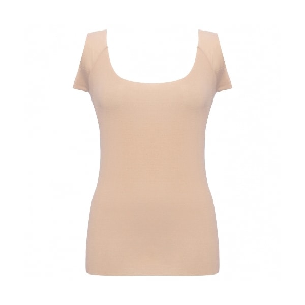脇部分には、身生地同素材の綿混汗取りパッド付で、脇にフィットするように脇部分が高くなっております。