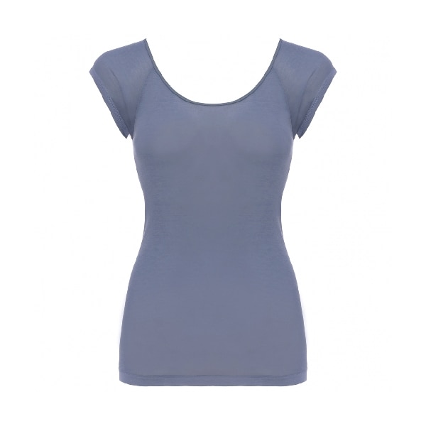 吸水速乾性に優れているため汗をすばやく処理。脇下には共生地の汗取り付き。天然繊維の風合いがやさしい雰囲気です。