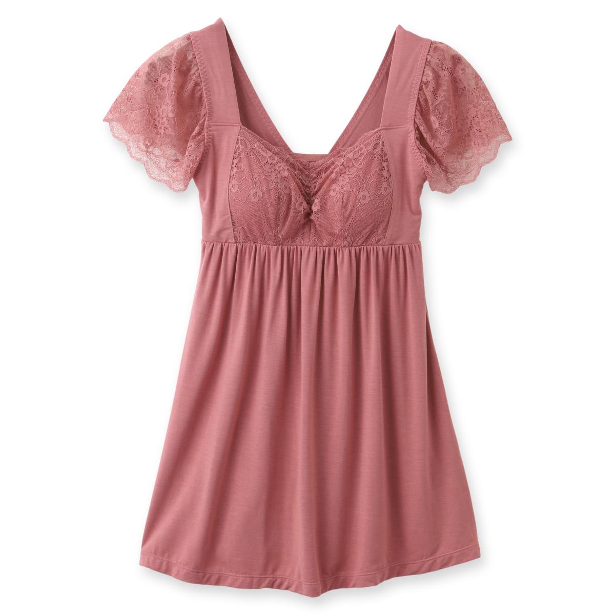 滑らかでとろみのあるモダール生地を贅沢に使用したルームウェアとナイトブラが一つになった『LuNight(ルナイト)』シリーズ。ナイトブラ付きのトップスやワンピースとお揃いのボトムスの組み合わせも自由。カップ横のパワーネットでバストの横流れを防ぎます。背中部分はパワーネット仕様で眠っている間のズレも防止。お尻が隠れる丈感が嬉しいチュニックは開いた襟ぐりがエレガントなレースのフレンチスリーブと襟ぐり狭めで安心感のあるキュートなフリル袖の2つのデザインから選べます。