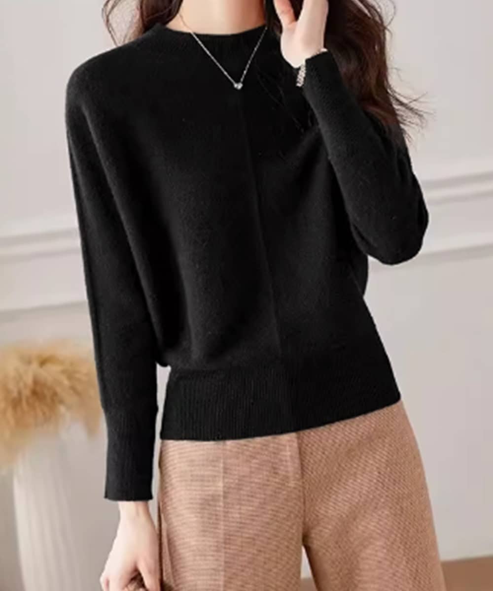 体のラインをきれいに魅せ、女性らしさを際立たせるプチハイネックニットセーター