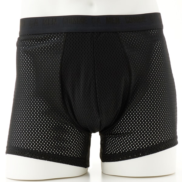 通気性のよいメッシュ地のボクサーパンツ。汗を素早く吸水拡散しサラッと快適素材です。レギュラー丈、前閉じタイプ。