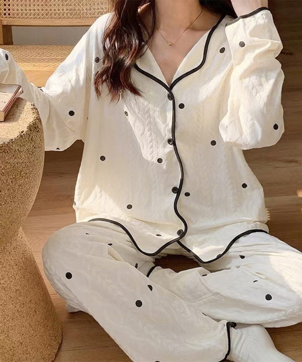 心地良い滑らかな綿混生地を使用、ディテールまでこだわって仕上げた肌触りが良くて蒸れない薄手ルームウェア上下セット