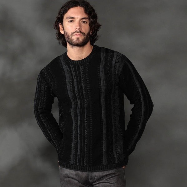 様々な編み方をして凹凸感のある表面感を出したクルーネックニット。