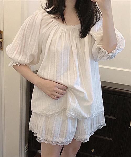 半袖スクエアネックコットンリボンルームウェア