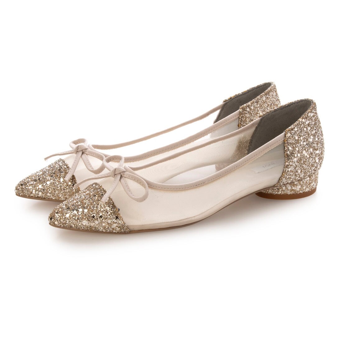 透けすぎない目が細かいチュールなのでヌーディーになりすぎず大人っぽく履いていただけます。春夏のコーディネートを明るく華やかに格上げ◎ソフトな履き心地でふかふかの中敷きもストレスフリーなフィット感です。キラキラのグリッターが可愛いゴールドやシルバーがスタッフ人気が高いカラーです。