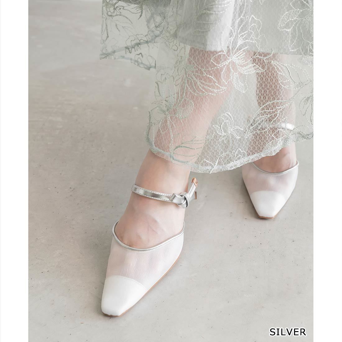 ホワイト ポインテッドトゥパンプス アンクルストラップ22.5cm 結婚.卒業式
