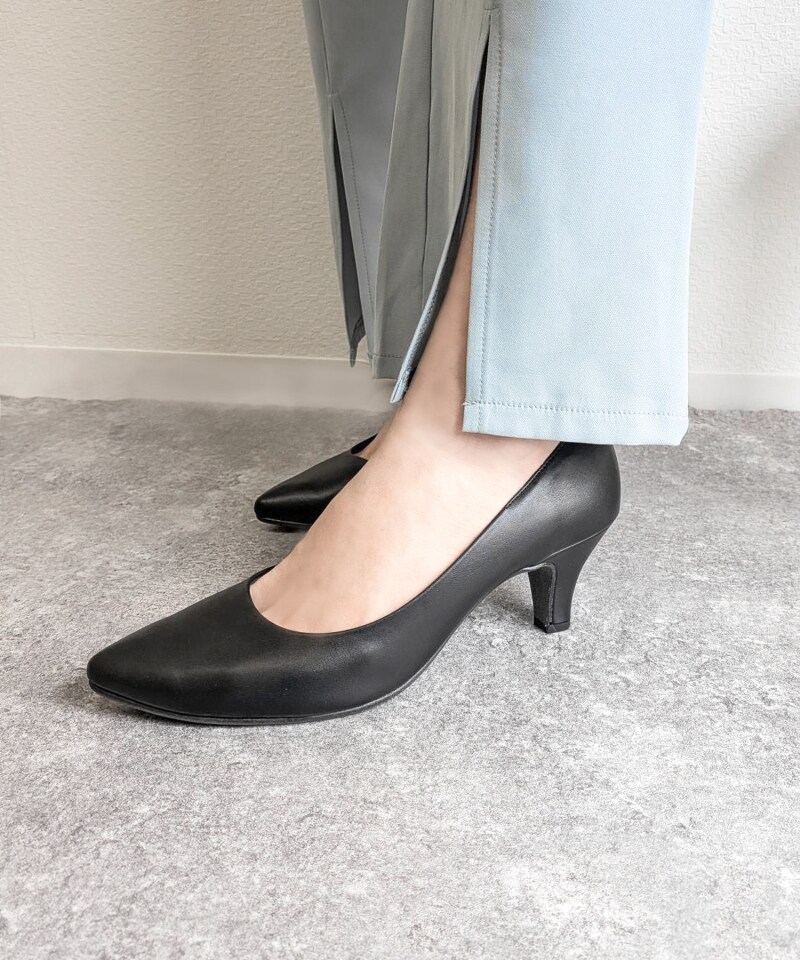 ポインテッドトゥのエレガンスなシルエットで足元をキレイにみせ、コンフォートシューズ用のインソールを使用し履き心地