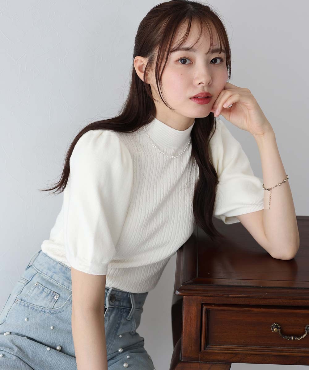 様々なコーデに使えるベーシックな半袖ハイネックニット