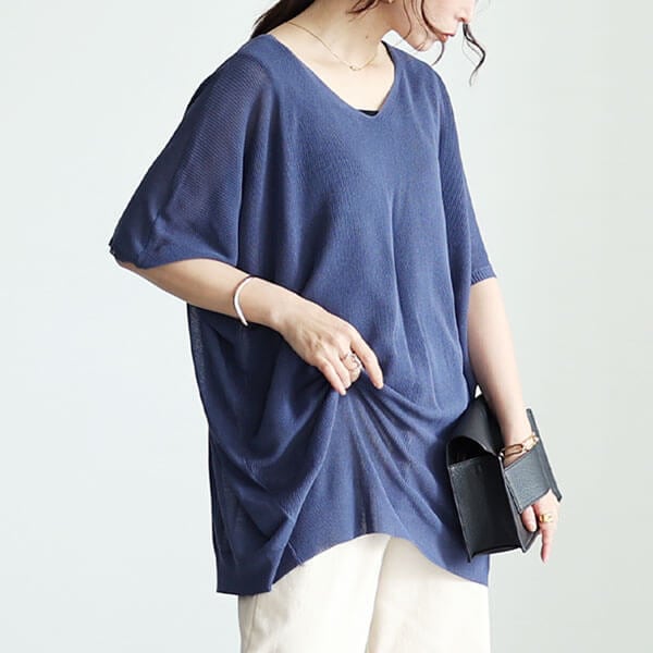 4L*ネイビー*七分袖カジュアルチュニック♪大きいサイズ*レディース